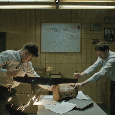 In a very usual office building a rather unusual turn of events take place. Three weary managers wrestle a budget, job interviews are decided on the ability to solve folkloric riddles and a choir of accountants performs unusual elevator music – all guiding the audience through the corridors of surreal corporate mythology.